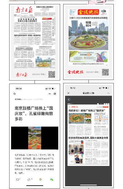 以“喜迎二十大,奮進(jìn)新征程”為設(shè)計(jì)主題;在保留孔雀主體綠雕的情況下,圍繞其四周采用繽紛的造型花柱、飄揚(yáng)的紅旗、科技感的“城市背景”及精致飄逸的植物花帶結(jié)合,演繹百年征程、筑夢(mèng)未來(lái)?;◣г煨蛢?nèi)含“2022”亮化展示,“城市背景”展現(xiàn)在飄揚(yáng)的紅旗上,表達(dá)南京人民喜迎黨的二十大勝利召開(kāi),也展現(xiàn)了在黨的堅(jiān)強(qiáng)領(lǐng)導(dǎo)下人民奮進(jìn)新征程,建功新時(shí)代的豪情和信心。