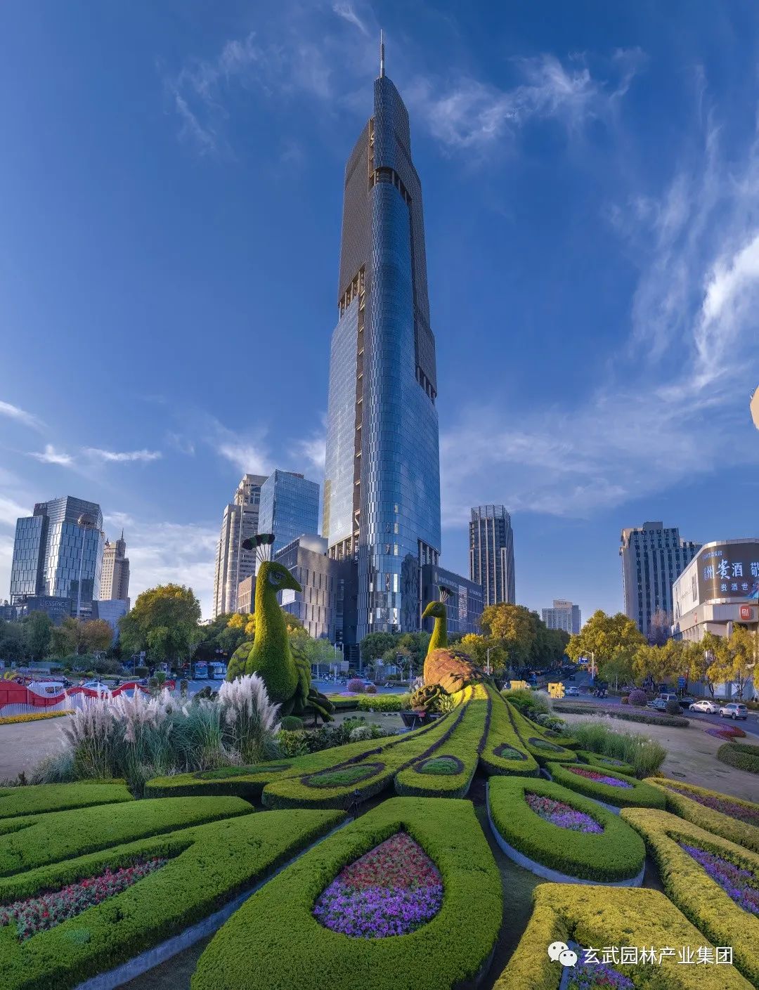 主題綠雕“歡樂祥和”在充分考慮鼓樓廣場樞紐交通功能和周邊建筑景觀融合基礎(chǔ)上,把握“寓意鮮明”、“綠色生態(tài)”的原則,選定孔雀作為綠雕形象主題,寓意著南京歡樂祥和、國泰民安、和諧美好的都市面貌。